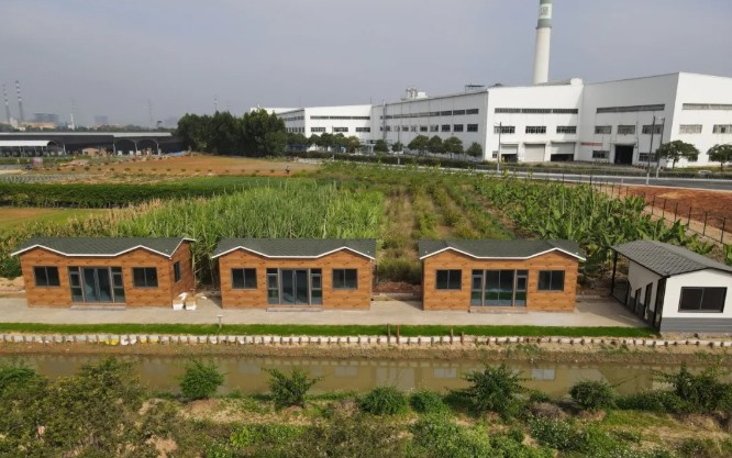 该项目箱体的外观采用仿木纹金属雕花板装饰,屋顶做了人字顶的设计,整体呈现出新中式的风格。其正面配置了铝合金镀膜玻璃门窗,既能保护隐私,又保证了室内的采光性。室内装修简洁明亮,并规划了两室一厅一卫的布局,利用有限的空间打造出舒适且功能齐全的居住空间。