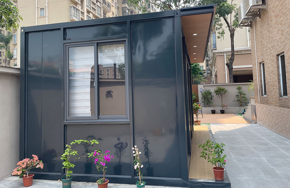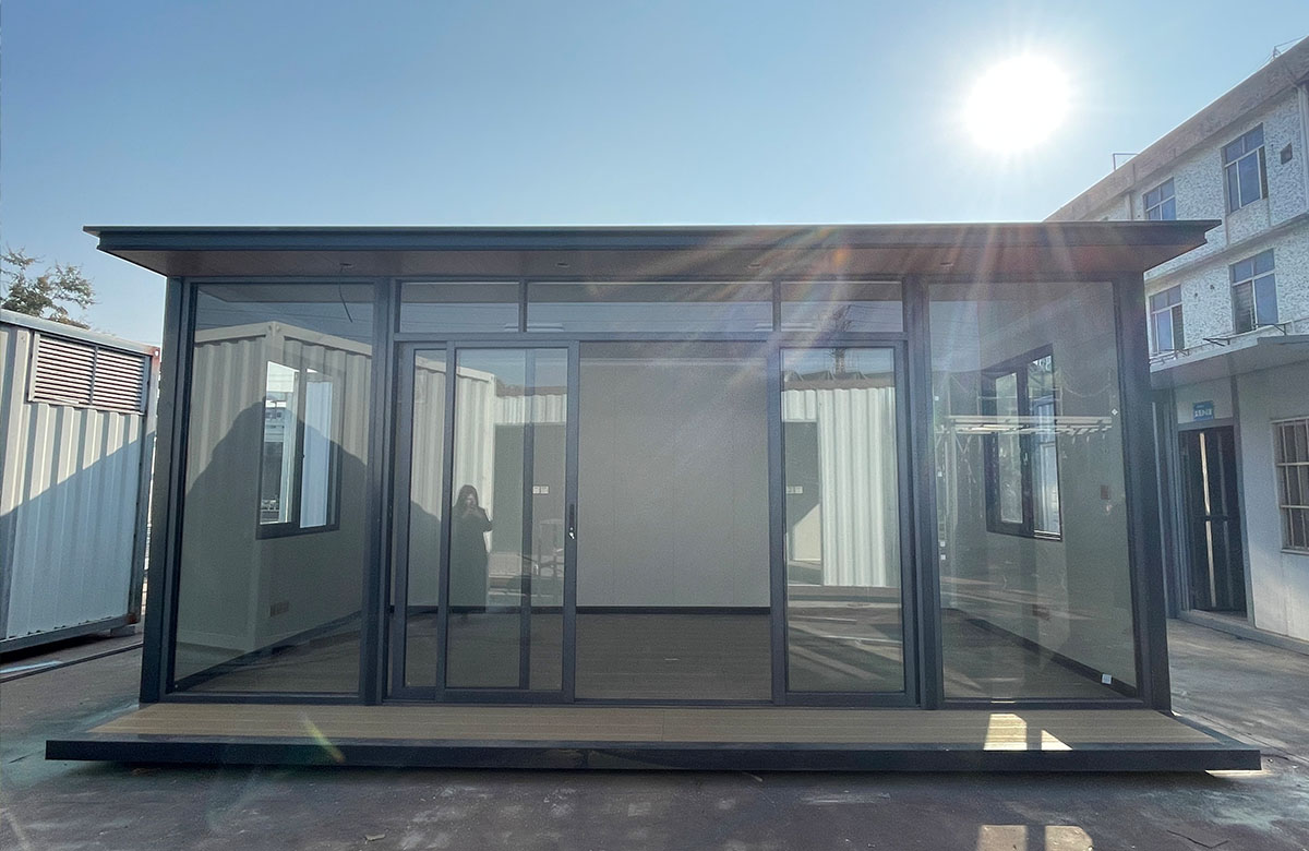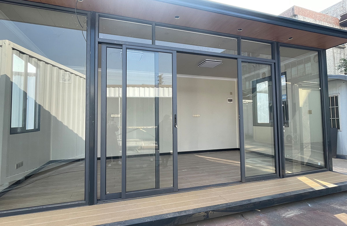 融合中式美学与集装箱结构的创意休闲空间,以热镀锌型材框架为主体,搭配铝单板饰面板 + 碳晶内墙板,内部可规划品茶区、展示区,配置高档铝合金全开折叠门 + 铝合金圆形观景窗,营造静谧雅致的茶文化氛围,是庄园、景区、园区的高端休闲配套。