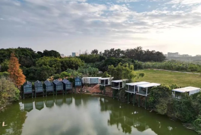 今天给大家分享位于东莞麻涌的移动式小木屋名宿项目,每个移动小木屋民宿的长宽尺寸均为8000mm*3500mm,占地28平方。外观深度定制,室内按客户要求做了精装修,目前项目已交付业主使用,下面我们就来一起看看完工后的效果!